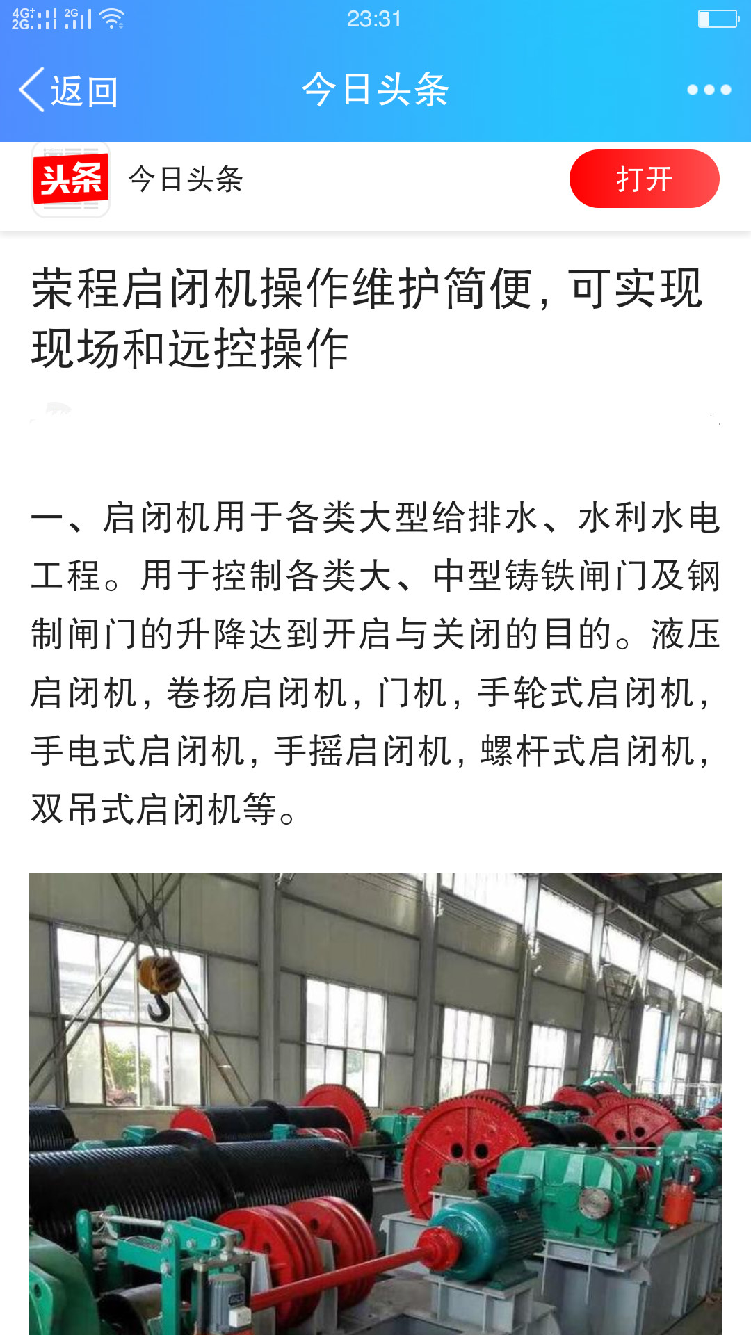榮程水利卷揚啟閉機上今日頭條啦,榮程水利生產的水利設備質量好價格有被客戶認可,卷揚啟閉機又單調點和雙吊點兩種。卷揚啟閉機以分為QPQ型普通卷揚啟閉機、QPK型快速卷揚啟閉機、QPG型高揚程卷揚啟閉機、QPT型臺車式卷揚啟閉機,QPM型門式卷揚啟閉機,QH型弧門卷揚啟閉機。卷揚啟閉機分為:平門卷揚式啟閉機;弧形門卷揚式啟閉機;雙吊點卷揚式啟閉機;快速卷揚式啟閉機;移動式臺車啟閉機;雙吊點卷揚式啟閉機分為:集中驅動和單獨驅動兩種。