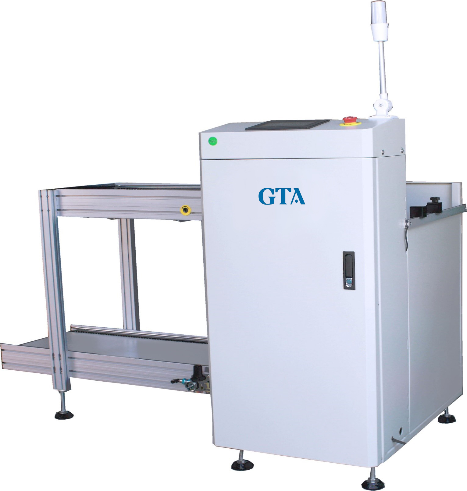 功能:用于SMT生產線起始端,傳送多面PCB板。接到下位機要板信號后,從PCB料架一件一件推送出PCB板。